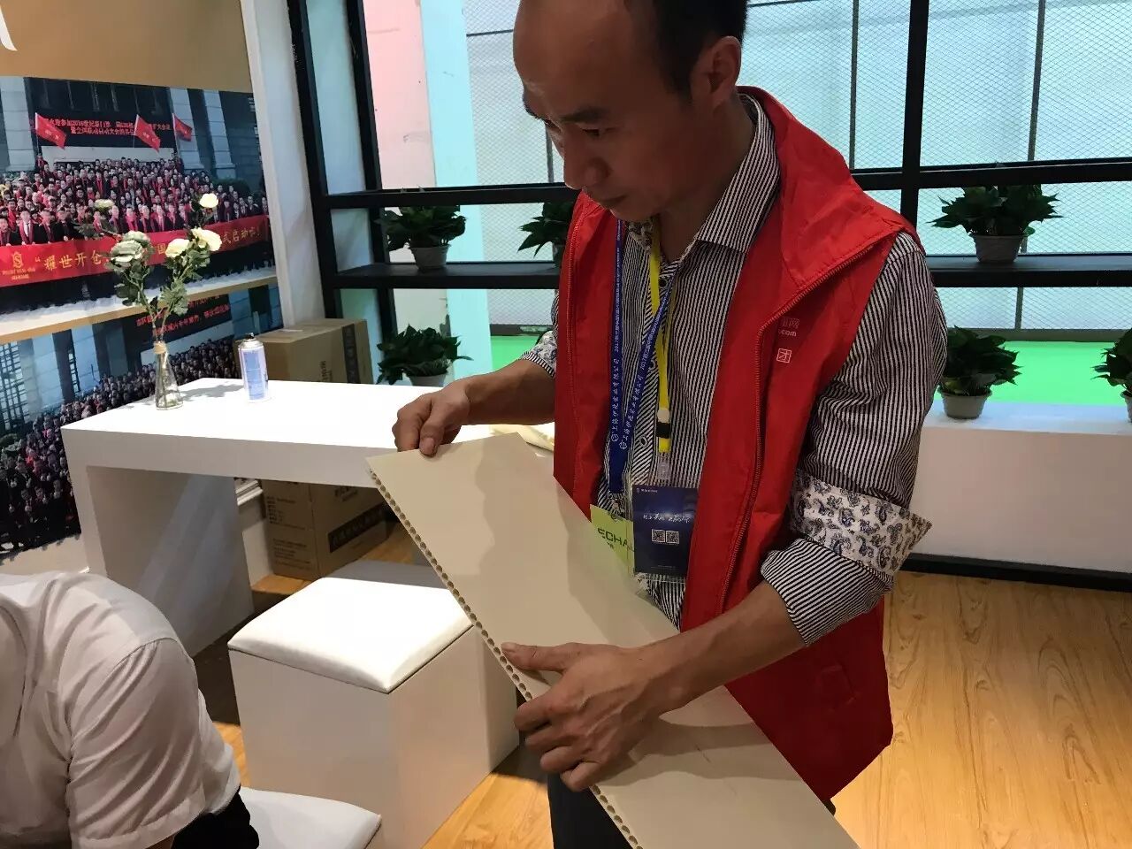 相对以往墙面的设计,装配式墙板在原有的基础上增加了墙板稳定性,使拼装好的墙板之间不会再出现明显的墙缝,而且表面抗刮指数更高,让墙面装饰的美观性耐用性提升了一个新的台阶。而展厅也更时尚简约,可见世纪豪门产品也是现代家居的“百搭款”呢,尤其是装配式墙板的新组合,质感十足,雅致非凡,许多参展观众都忍不住用手触摸一番。