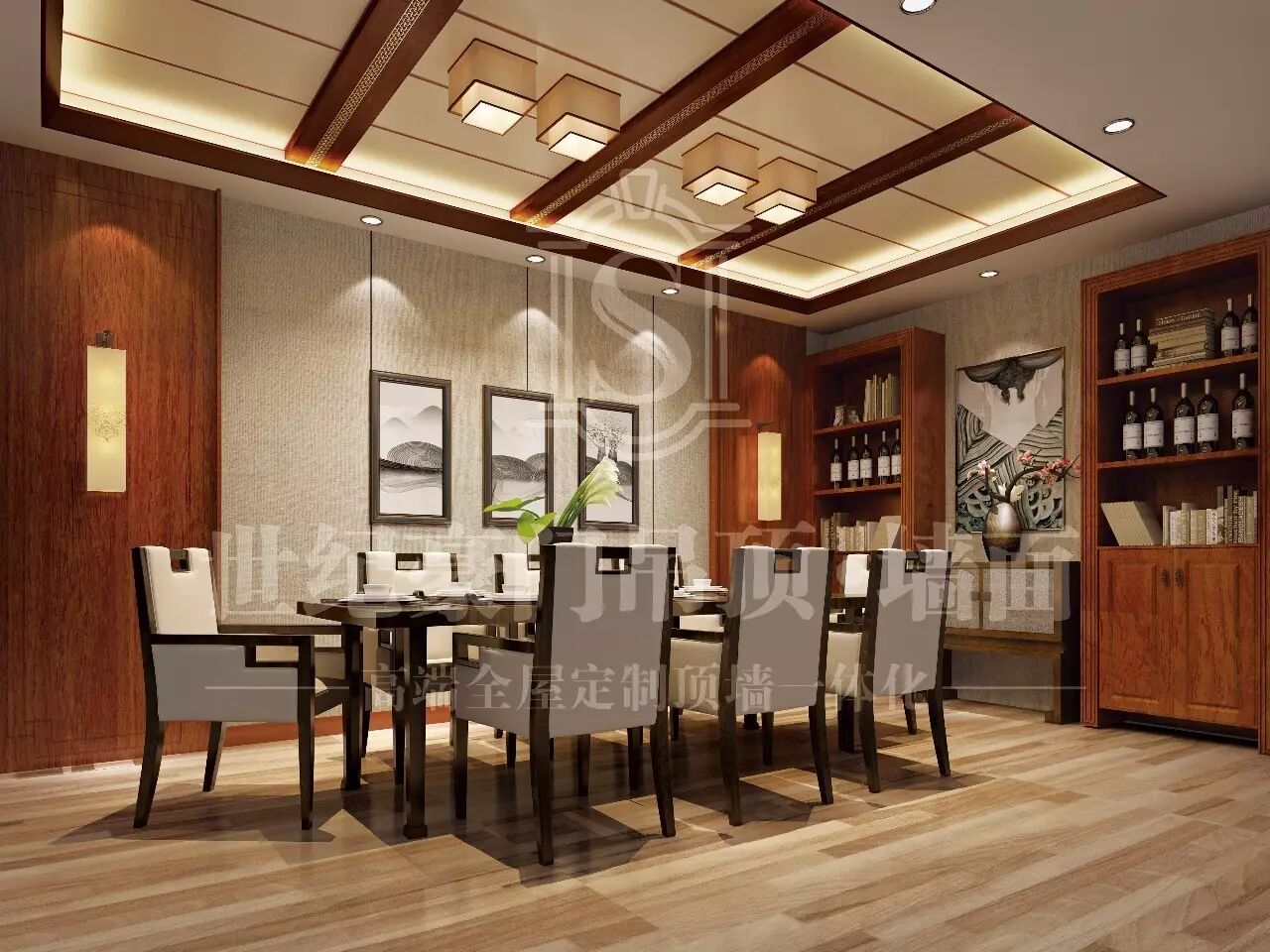 对称结构的布局,简单的直线条表现出中式的古朴大方。